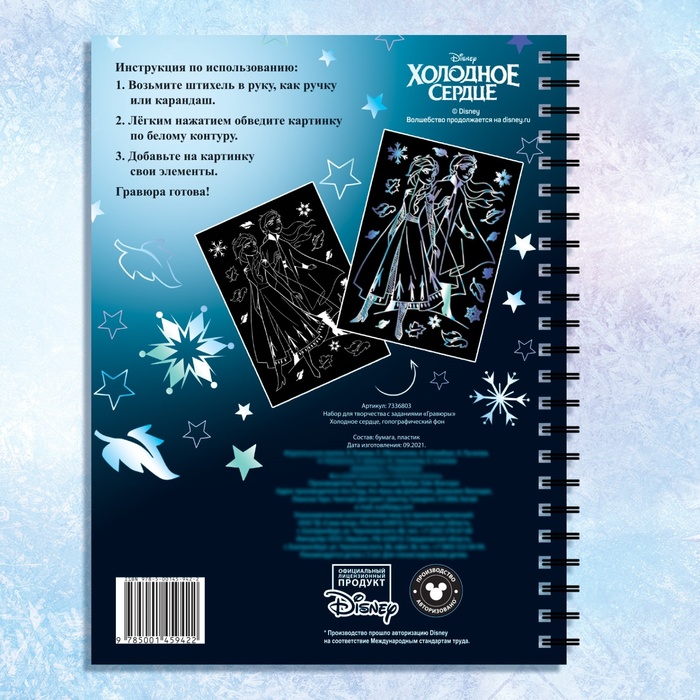 Гравюры для девочек «Холодное сердце», набор для творчества с заданиями, голографический фон, 5 гравюр — Характеристики