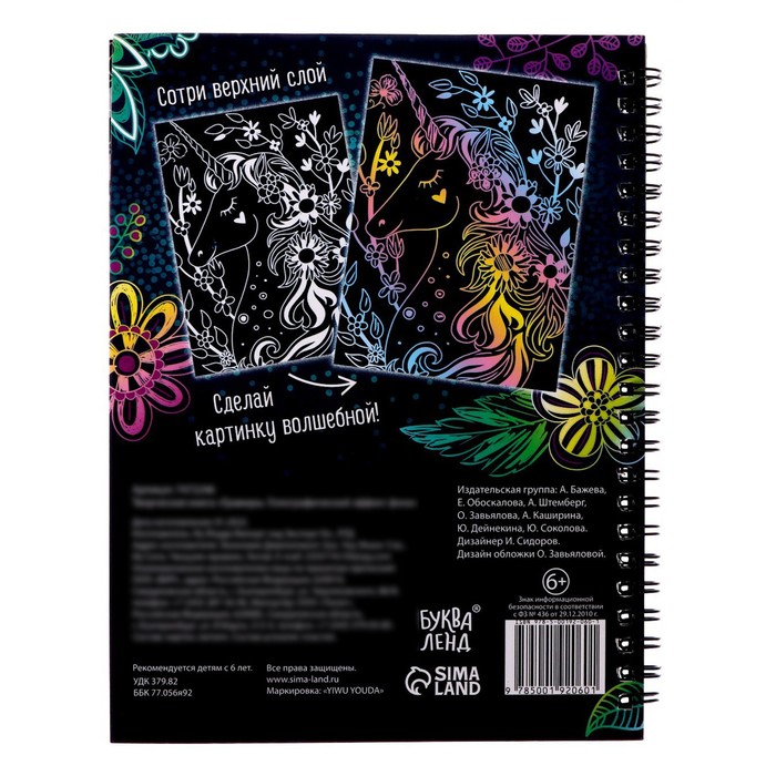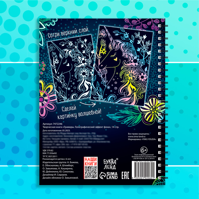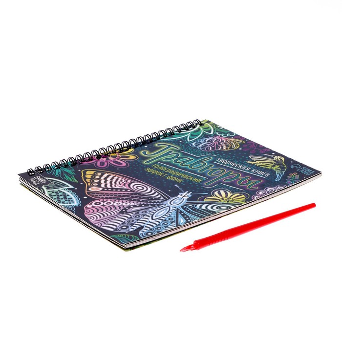 Чтобы сделать гравюру, нужно просто стирать верхний слой с помощью пластикового штихеля, который входит в набор. В книге вы найдёте 10 гравюр и интересные задания «найди и покажи».