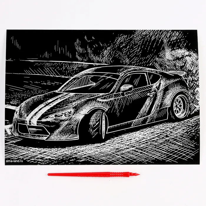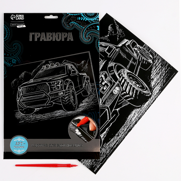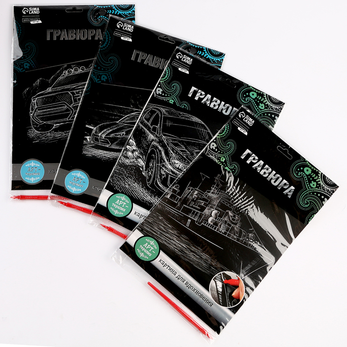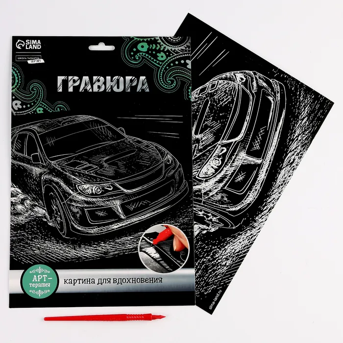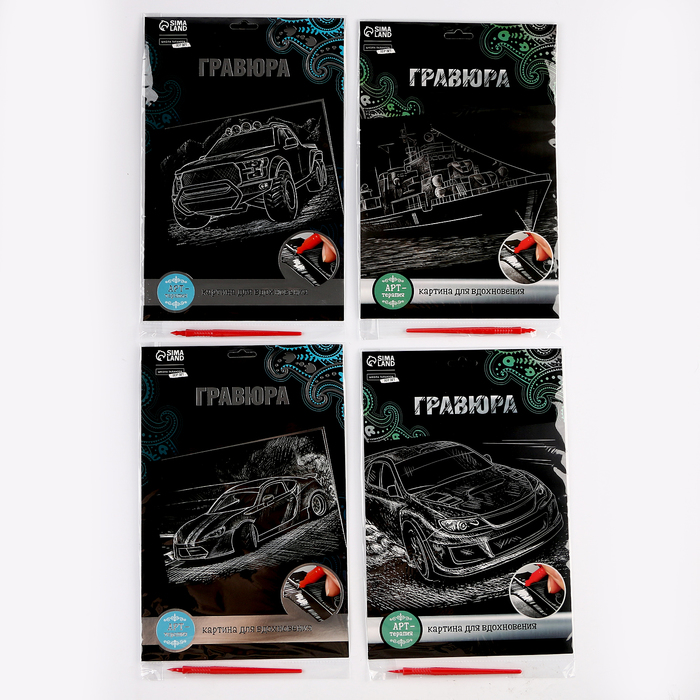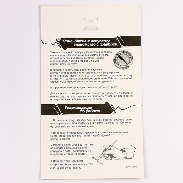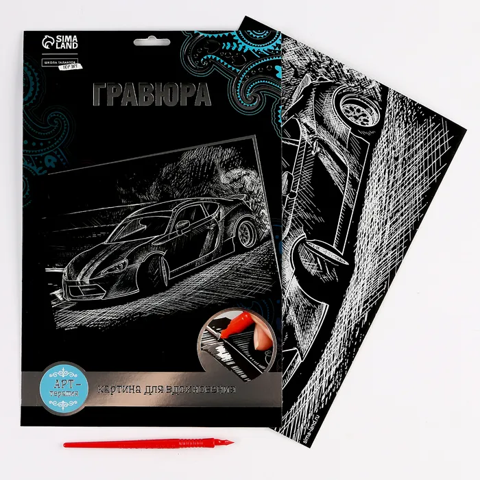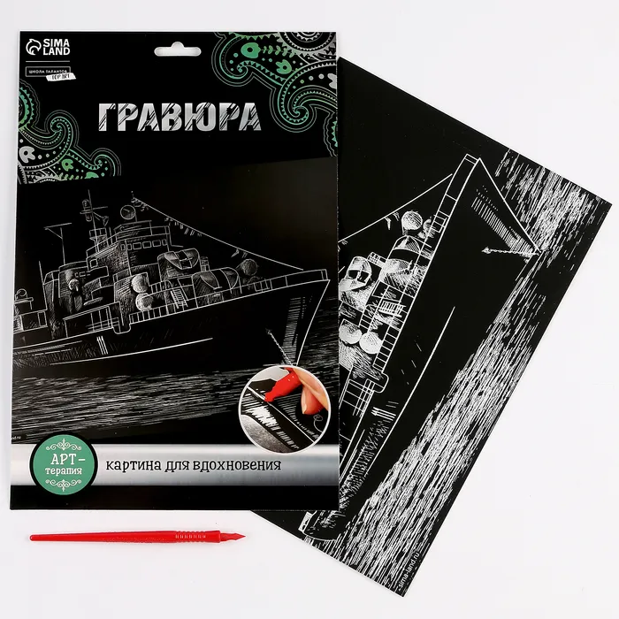 Чтобы создать красивую гравюру, достаточно процарапать намеченные контуры рисунка специальным инструментом — штихелем. Дети будут с удовольствием соскребать верхний слой картины по контурам рисунка, под которым находится цветное изображение!