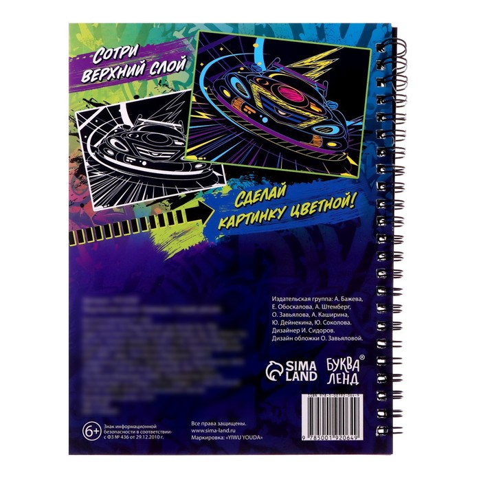 Чтобы сделать гравюру, нужно просто стирать верхний слой с помощью пластикового штихеля, который входит в набор. В книге вы найдёте 10 гравюр и интересные задания «найди и покажи».