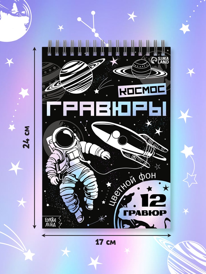 Гравюры «Творческая книга. Космос», 16 стр., штихель, градиентный фон — Характеристики