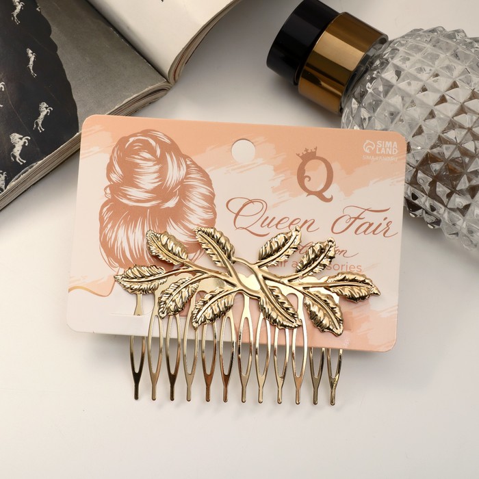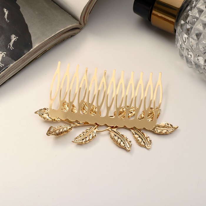 Этот гребень с веточкой, выполненный в золотистом цвете, обеспечивает надёжную фиксацию волос без повреждений и следов. Он идеально подойдёт для создания различных причёсок и подчеркнёт ваш вкус и чувство стиля.Гребень изготовлен из качественных материалов — металла и текстиля, что обеспечивает его долговечность и удобство в использовании. Длина гребня составляет 7,3 см, что делает его подходящим для любого типа волос.