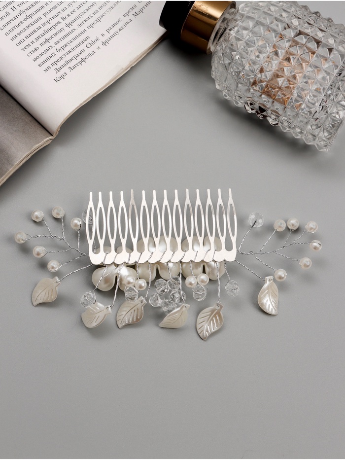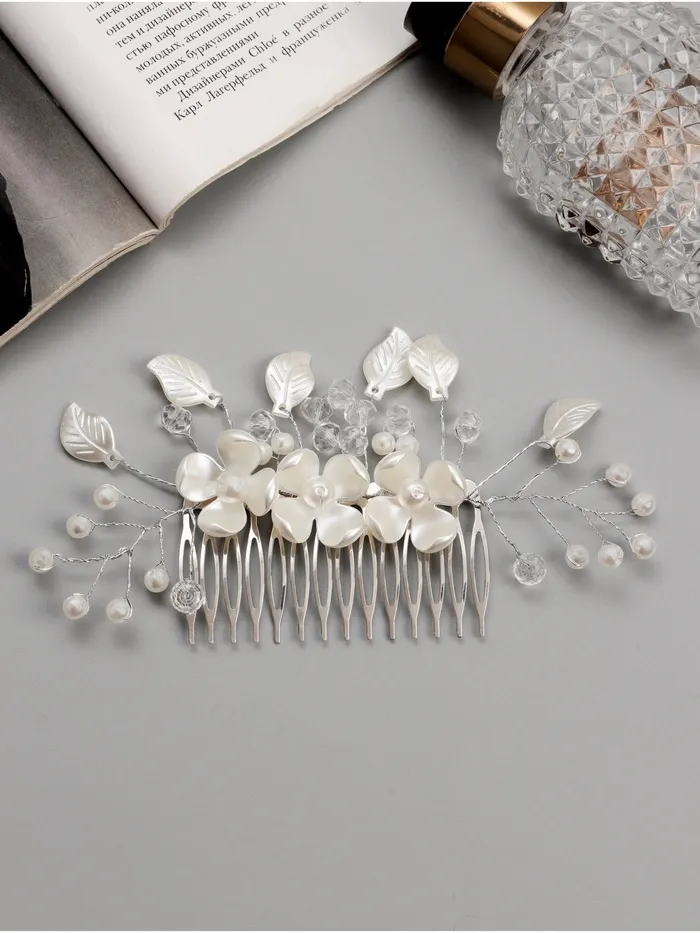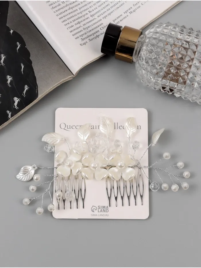 Гребень для волос QF «Эмилия», цветы листочки, 11×6.5 см, белый — Характеристики