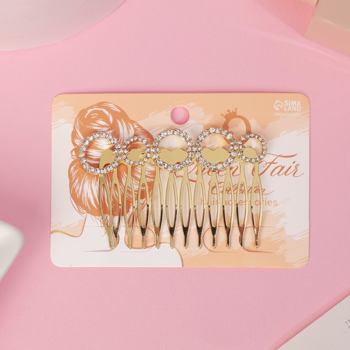 Гребень для волос QF «Либерти», круги блеск, 5×7 см, золото