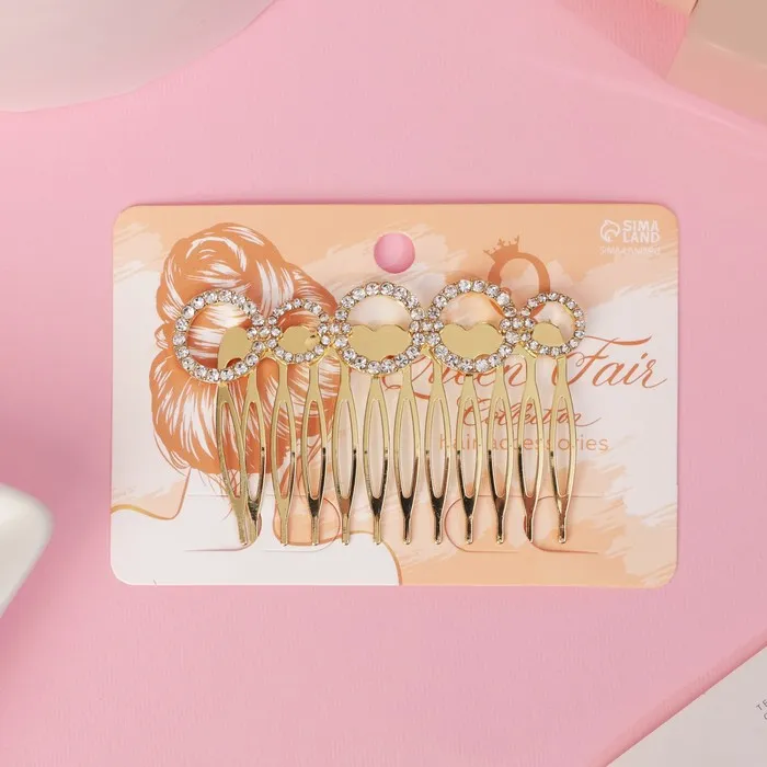 Гребень для волос QF «Либерти», круги блеск, 5×7 см, золото — Характеристики