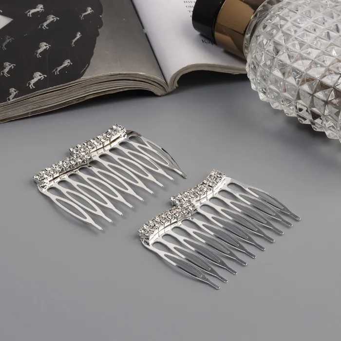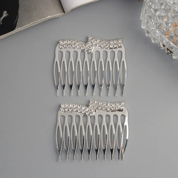 Гребень для волос QF «Медея», набор 2 шт., волны, 5×4 см, серебро