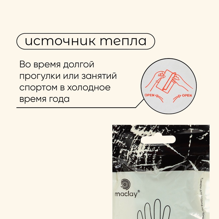Грелки для рук maclay, самонагревающиеся, 2 шт., 13×9.5 см, одноразовые — Характеристики