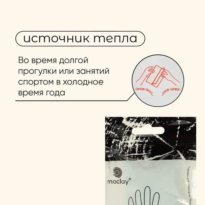Грелки для рук maclay, самонагревающиеся, 2 шт., 13×9.5 см, одноразовые — Характеристики