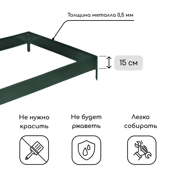 Грядка оцинкованная, 195×100×15 см, тёмно-зелёная, Greengo — Характеристики