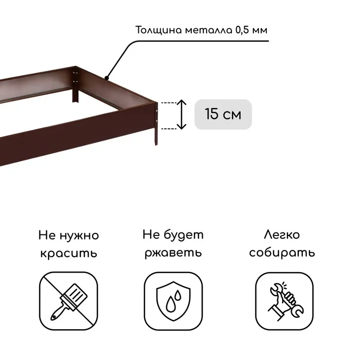 Грядка оцинкованная, 195×70×15 см, коричневая, Greengo — Характеристики