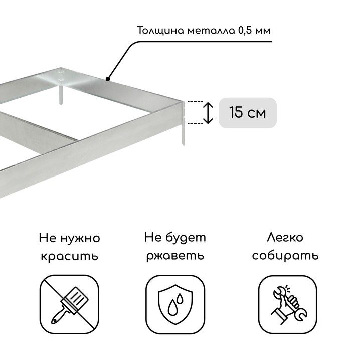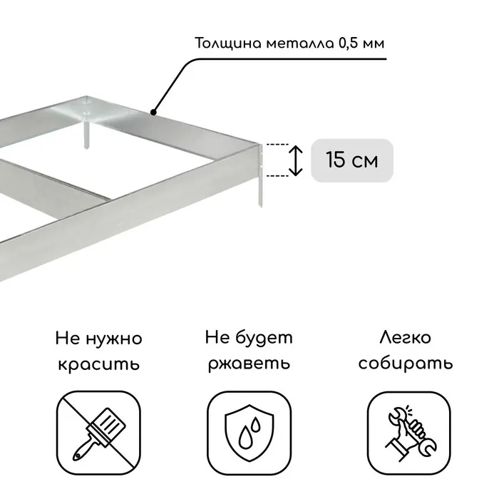 Грядка оцинкованная, 585×100×15 см, Greengo — Характеристики