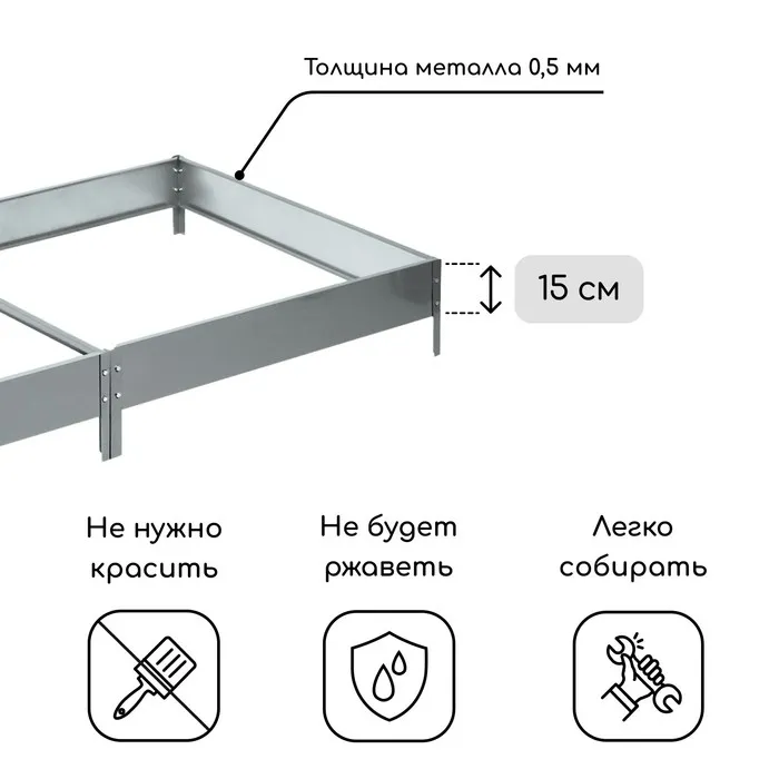 Грядка оцинкованная, компакт, 200×100×15 см, Greengo — Характеристики