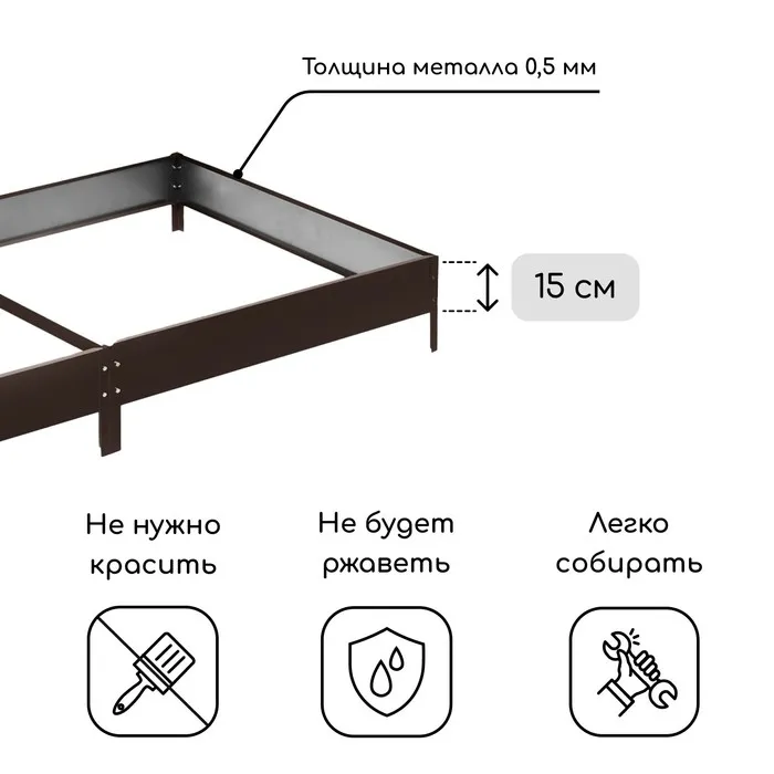 Грядка оцинкованная, компакт, 200×100×15 см, коричневая, Greengo — Характеристики