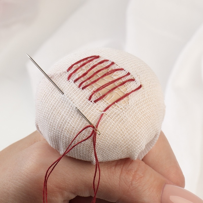 С помощью грибка для штопки вы без труда сможете зашить любимую одежду. Для начала проденьте инструмент в вещь и натяните материал так, чтобы дырка находилась в центре. Заштопайте изделие или наложите заплатку.