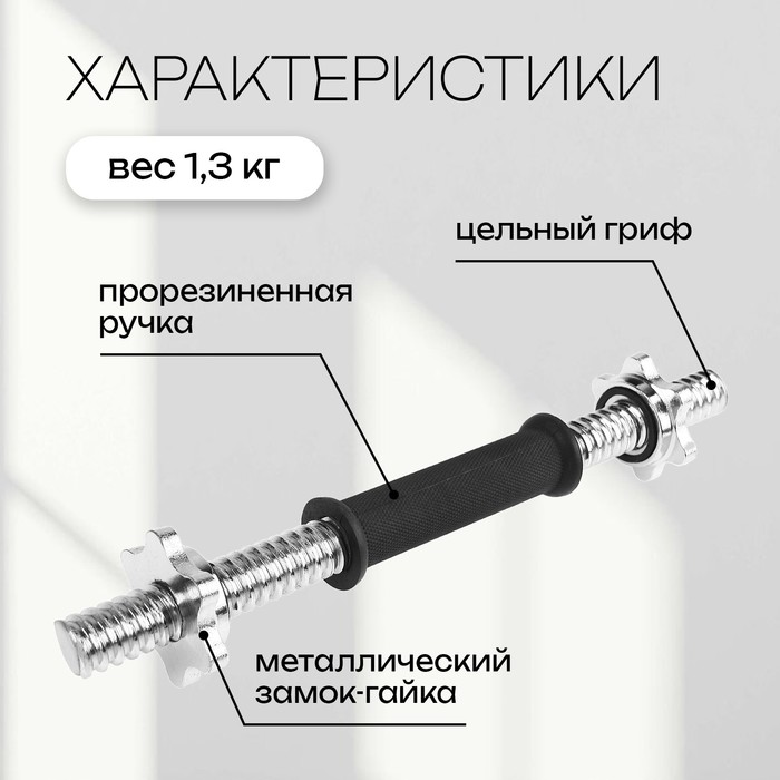 Гриф гантельный с замками, 35 см, d=25 мм, вес 1,3 кг, до 80 кг — Характеристики