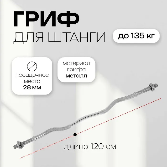 Гриф подходит для тренировок в спортивном зале и дома. Подберите диски и скорректируйте классическую программу упражнений. Рифлёная ручка не проскальзывает во время захвата. Установленные по краям держатели надёжно фиксируют надетые диски. Изогнутая форма грифа позволяет использовать более удобный хват, что также способствует проработке основных и прилегающих мышц.