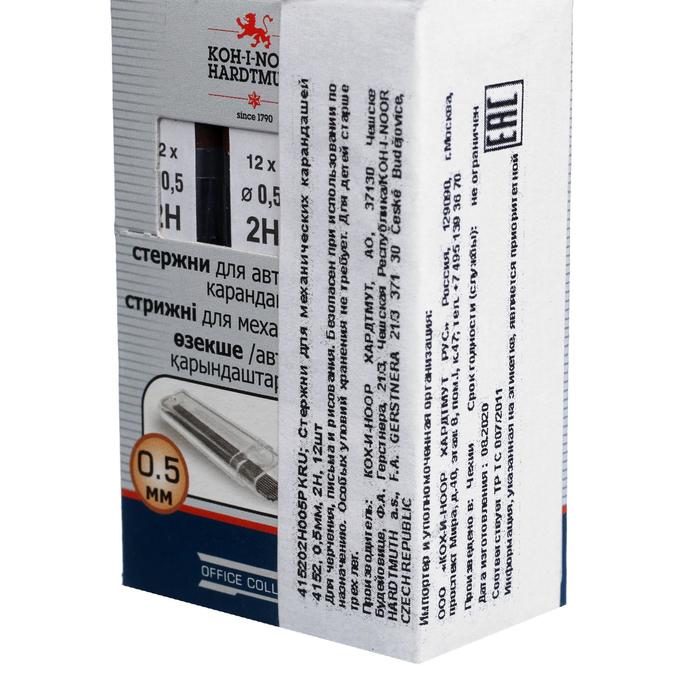 Грифели для механических карандашей 0.5 мм, Koh-I-Noor 4152 2Н, 12 штук, в футляре — Характеристики