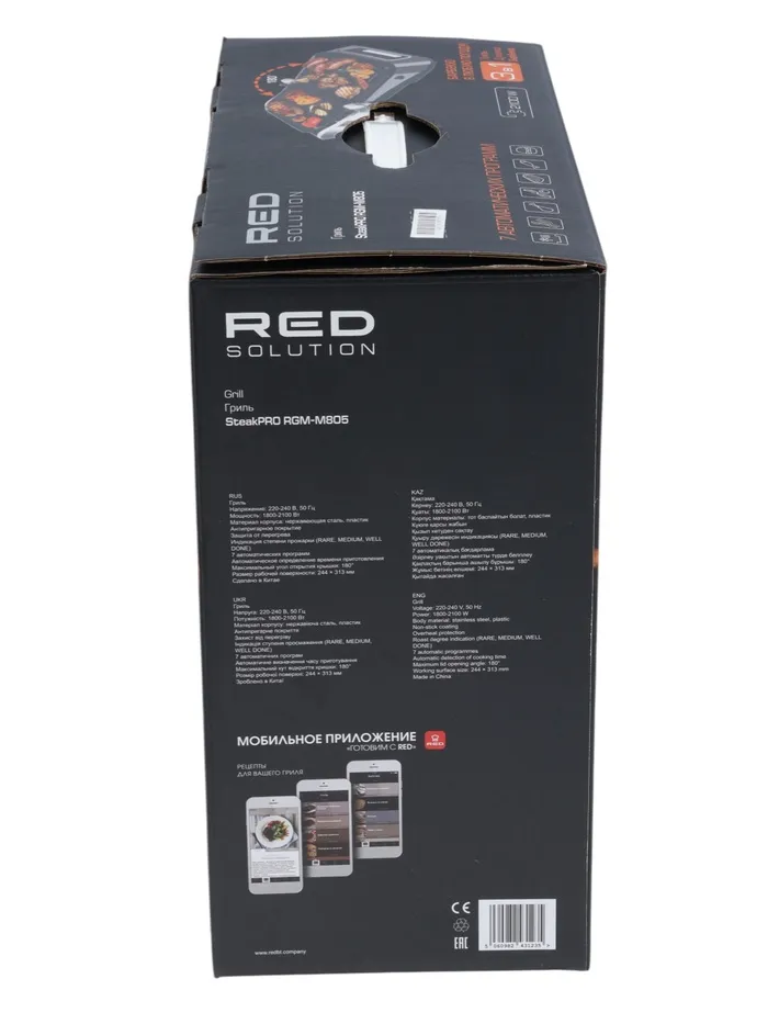Гриль электрический RED SOLUTION SteakPRO RGM-M805, 2100 Вт, антипригарное покрытие, 36х33 см — Характеристики