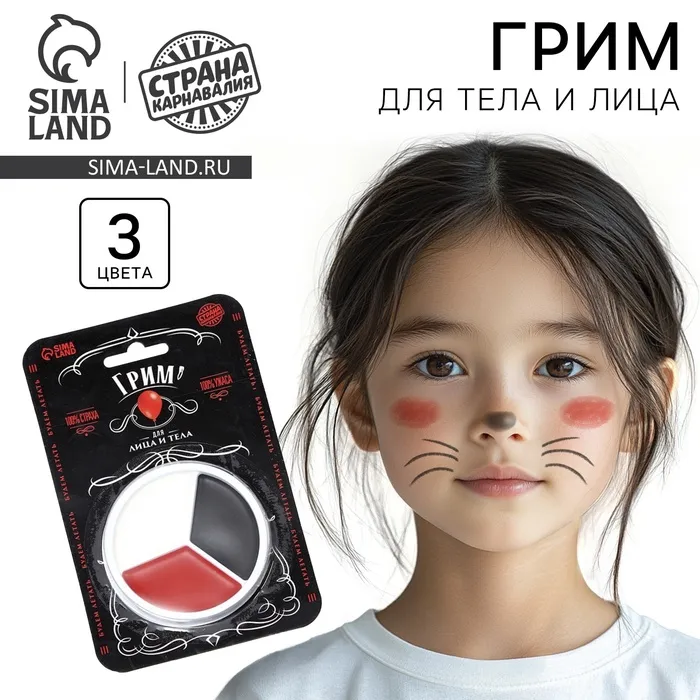 Грим для лица — это декоративная косметика, которая позволит ребёнку мгновенно перевоплотиться в персонажа на свой вкус. А взрослые с его помощью смогут создать неповторимый образ для любого праздничного случая: дня рождения, Хеллоуина, Дня России или тематической вечеринки.