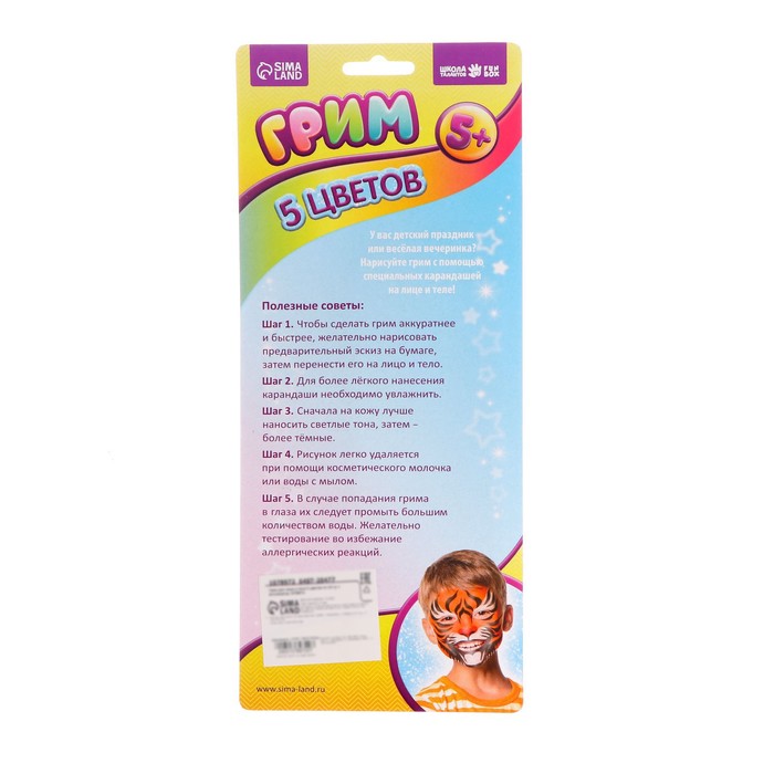 Важно! Перед использованием проверьте наличие аллергической реакции или непереносимости компонентов. Для этого нанесите на небольшой участок кожи аквагрим и оставьте на 20 минут. При появлении сыпи, зуда или воспаления немедленно смойте и обратитесь к врачу.