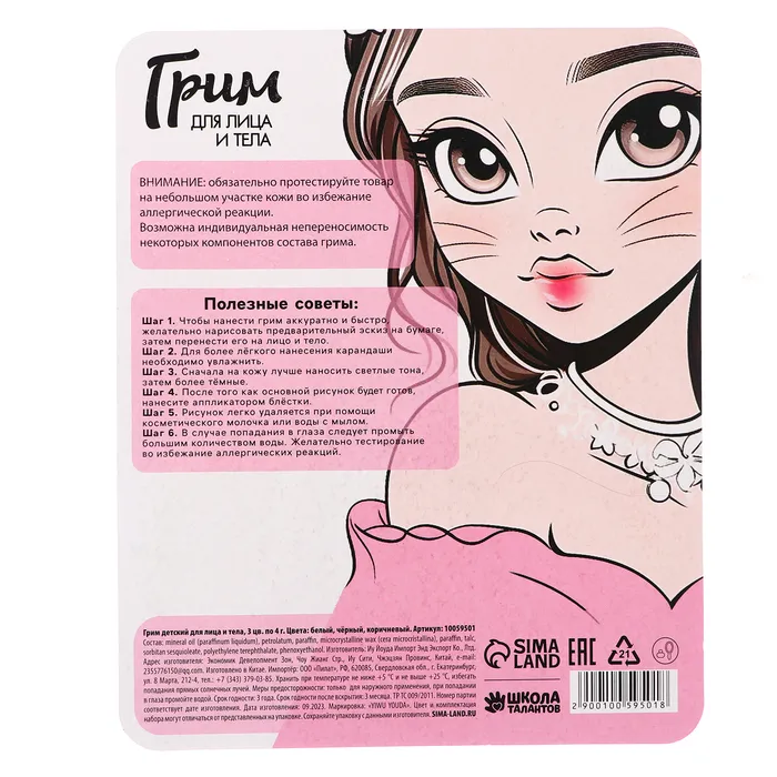 Грим для лица и тела, 5 цветов по 10 г, аппликатор
