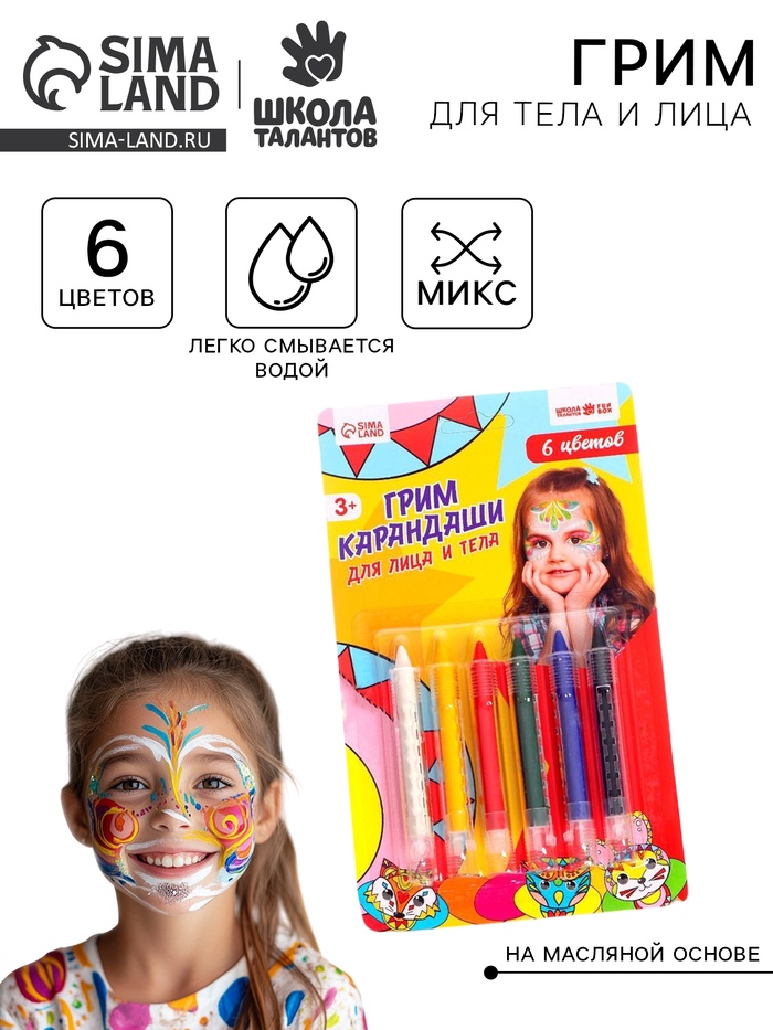 Грим карандаши и блёстки с аппликатором для лица и тела, 6 цветов