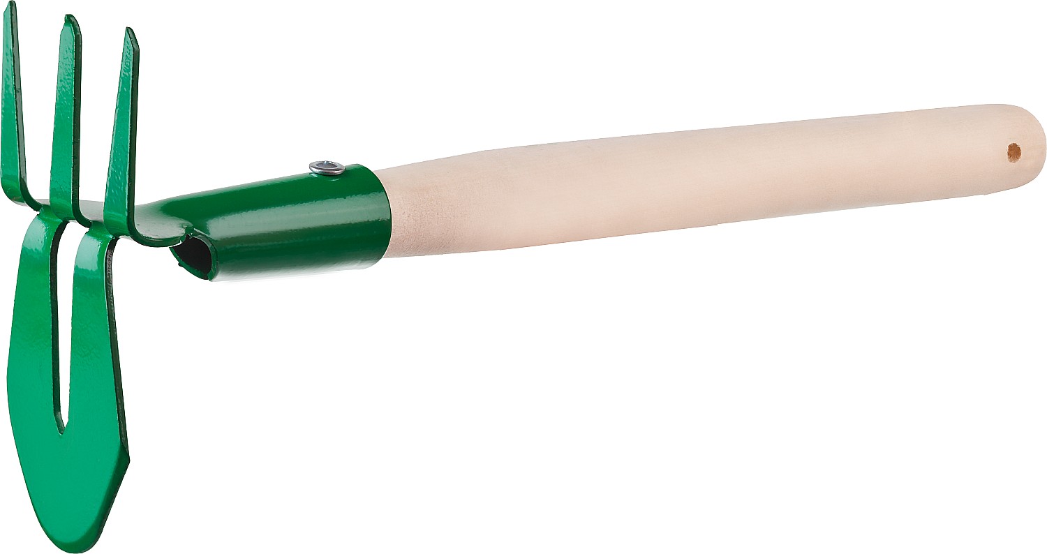 Применяется для прополки растений и рыхления почвы. Зубцы служат для разбивки комьев и разравнивания грунта.