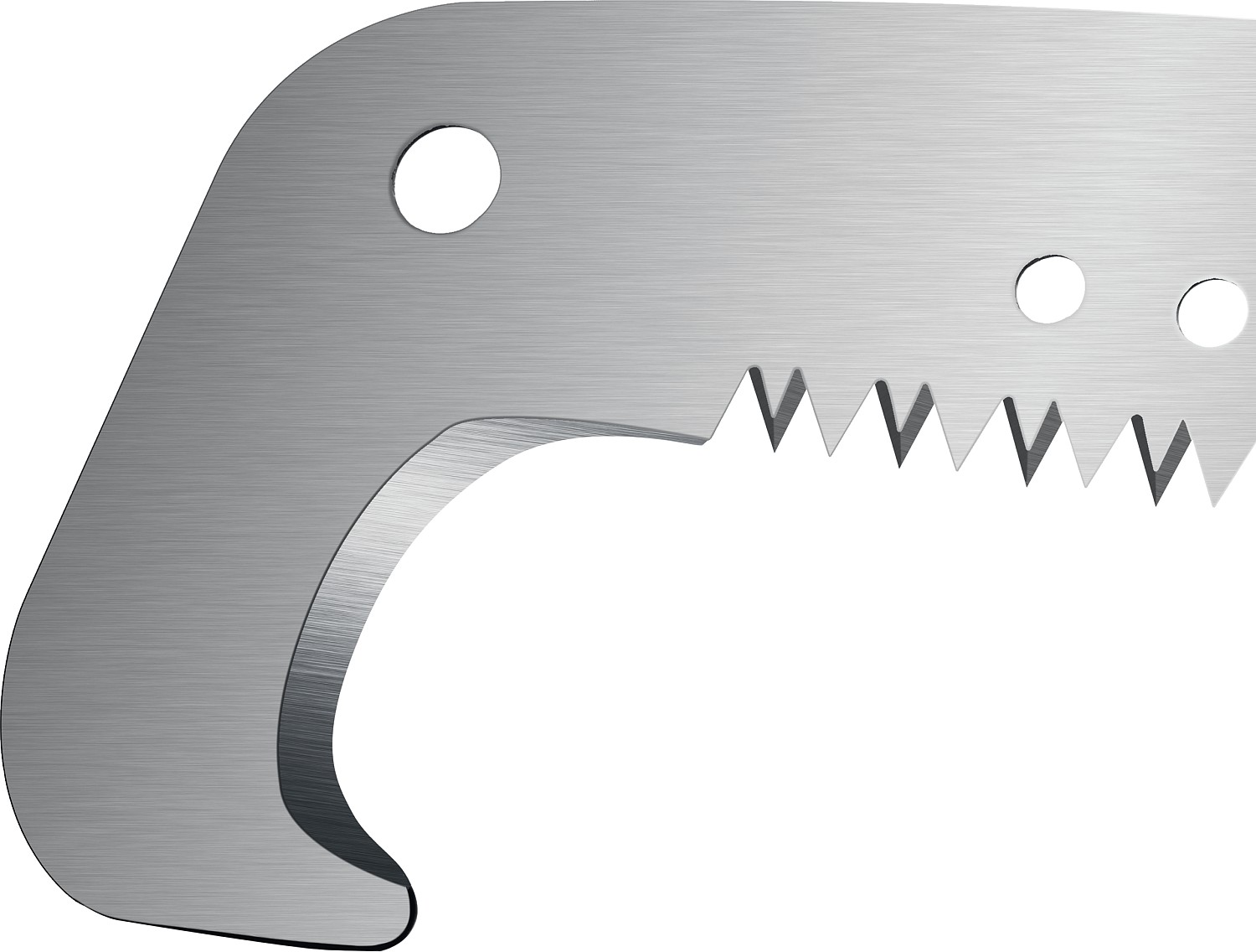 - Верхний крюк (секач) обеспечивает надёжность и удерживает пилу от соскальзывания