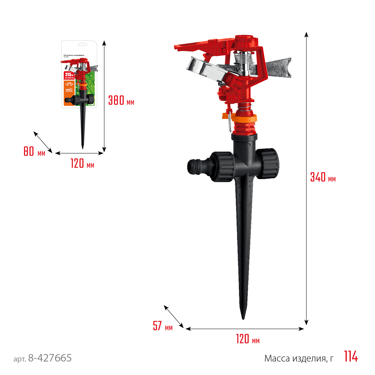 - -Регулировка поворота головки импульсного распылителя на угол от 0° до 270° позволит настроить эффективный полив участка любой формы.,