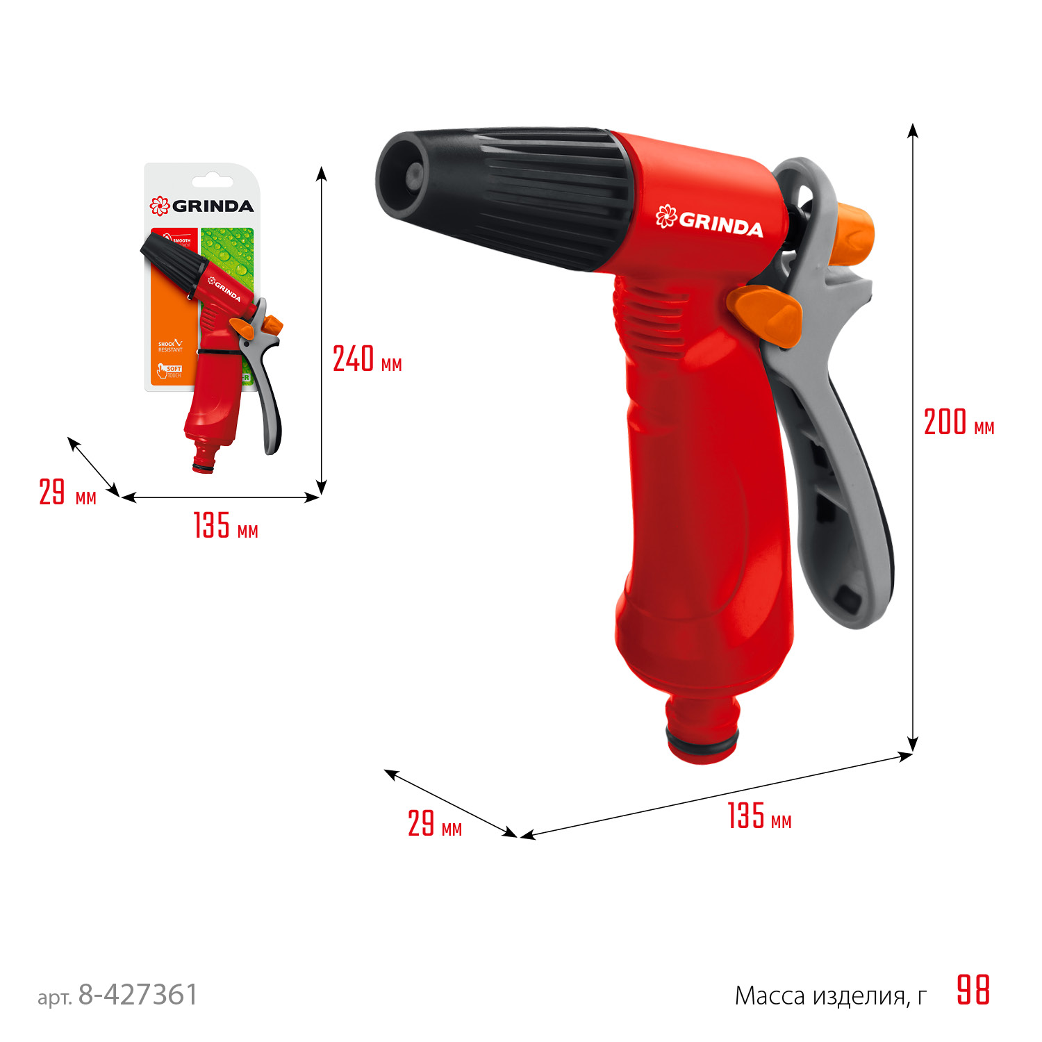 Поливочные пистолеты-распылители GRINDA удобны, надёжны и долговечны. Обеспечивают простое и качественное подключение к поливочной системе. Широкий модельный ряд с самыми современными и эффективными режимами полива.