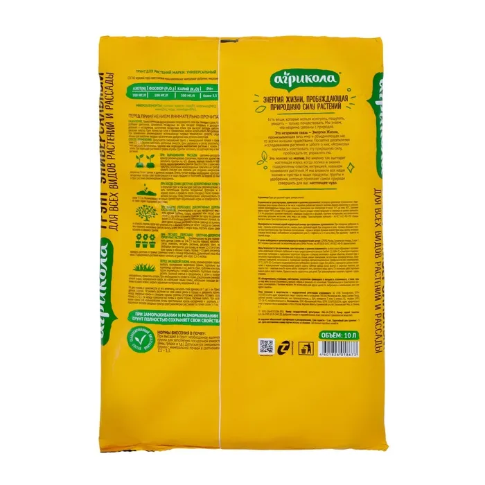 Характеризуется: универсальностью применения. Обладает хорошей способностью накапливать и равномерно отдавать питание. Сохраняет постоянную рыхлость и активность почвы благодаря наличию верхового торфа, который обеспечивает поступление воздуха к корням и одновременно сохраняет влагу. Содержит стандартный стартовый минеральный комплекс, подходящий для большинства овощных и цветочных культур.