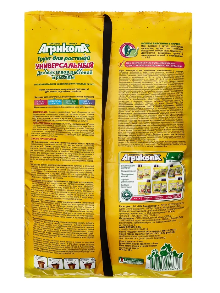Грунт "Универсальный". Препаративная форма: гранулы. Культуры: картофель, овощные, комнатные растения, цветущие растения.