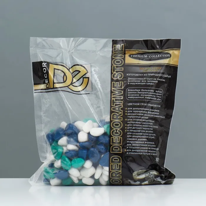 Грунт для аквариума "Галька цветная, белый-темн. синий-изумрудный" 800г фр 8-12 мм — Характеристики