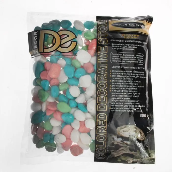 Грунт для аквариума "Галька цветная, салатовый-белый-бирюзовый-розовый" 800г фр 8-12 мм