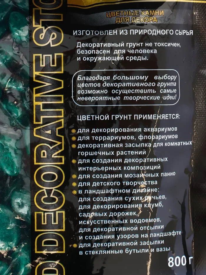 Декоративный грунт изготовлен из природного сырья, не токсичен, безопасен для человека и окружающей среды.