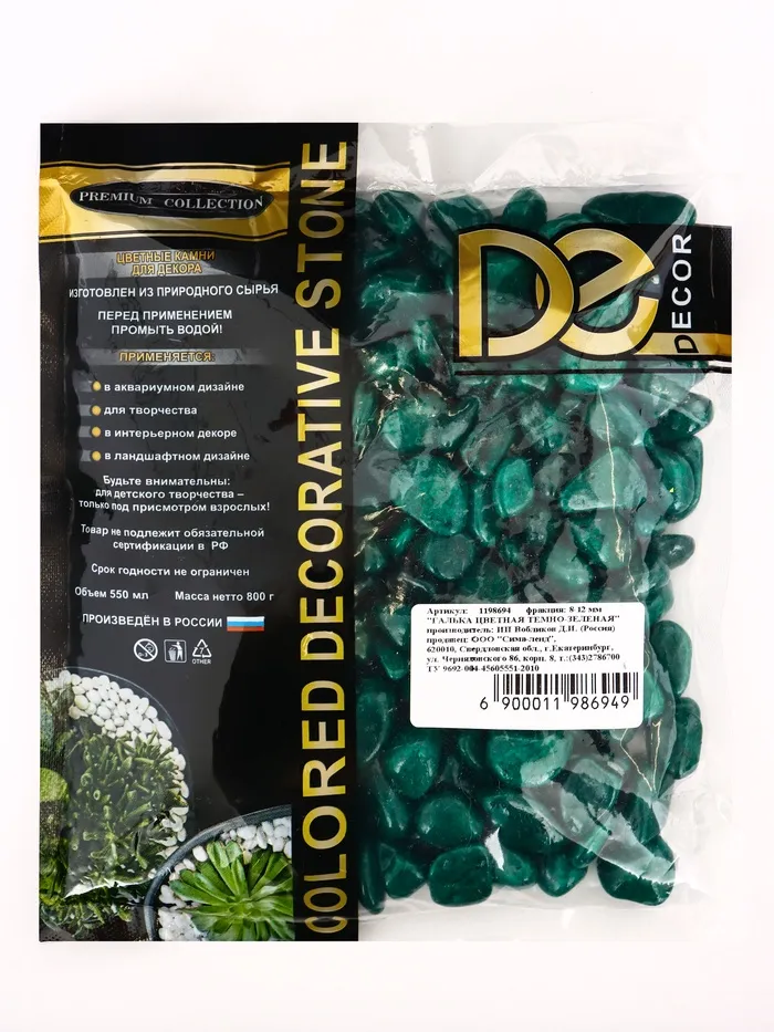 Грунт для аквариума "Галька цветная, темно-зеленая" 800г фр 8-12 мм — Характеристики