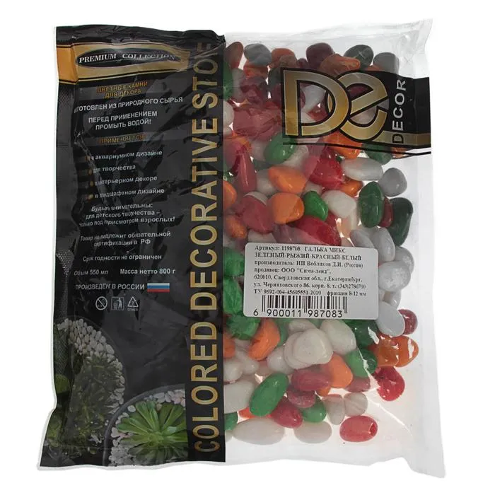Грунт для аквариума "Галька цветная, зеленый-рыжий-красный-белый" 800г фр 8-12 мм