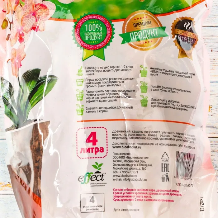 Грунт для орхидей Effect+, с дренажным камнем, фракция 20-40, 4 л — Характеристики