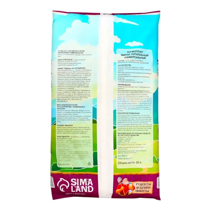 Грунт для рассады "Рецепты Дедушки Никиты" 20 л. — Характеристики