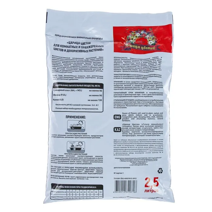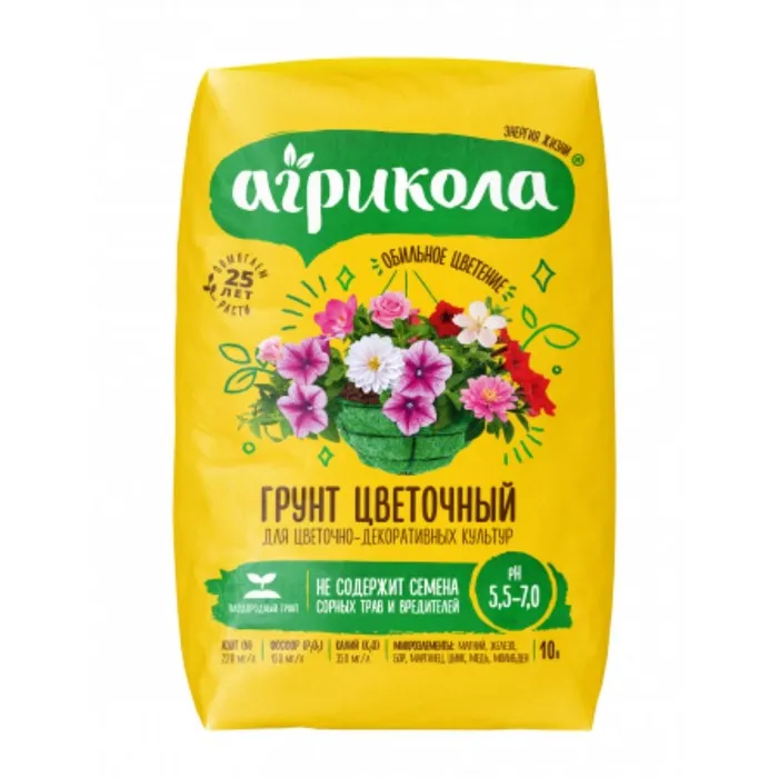 Высококачественный натуральный питательный грунт многоцелевого назначения на основе торфа, полностью готовый к применению и прекрасно приспособленный для выращивания всех видов комнатных и оранжерейных цветов и декоративных растений.