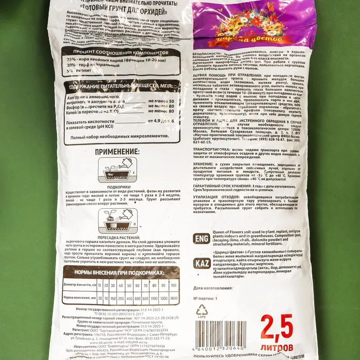 Грунт "Царица Цветов" для орхидей, 2,5 л. — Характеристики