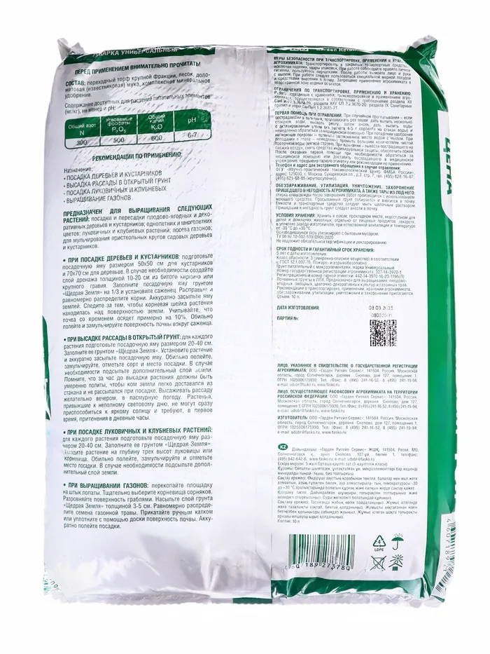 Грунт универсальный Щедрая земля, 10 л. — Характеристики