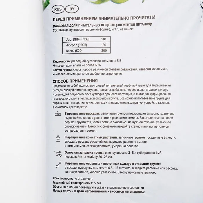 Грунт Универсальный "Торфяная поляна", 10 л — Характеристики