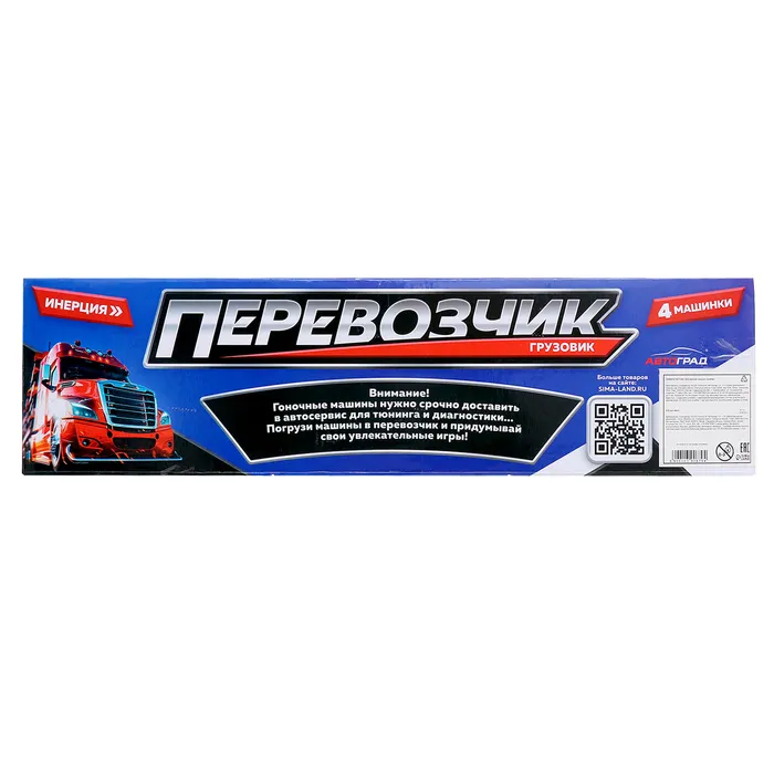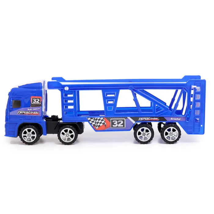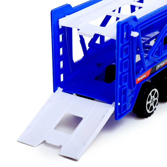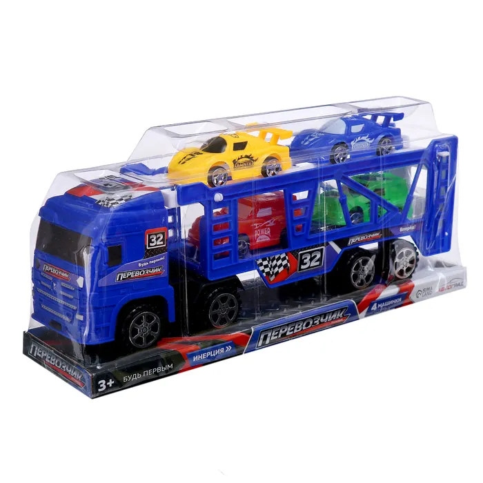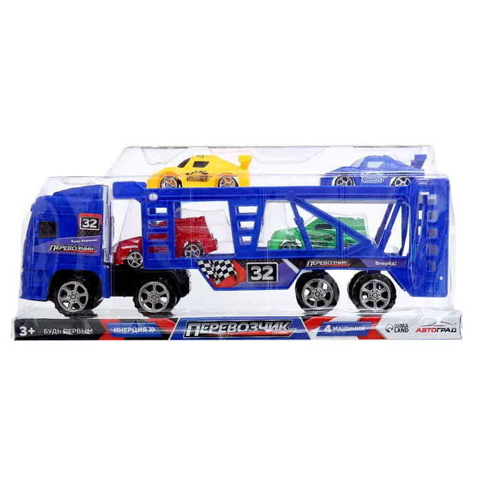 Грузовик «Автовоз», инерционный, с 4 машинами, цвет синий — Характеристики