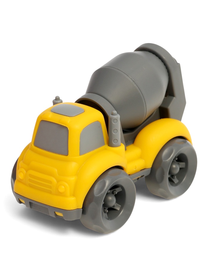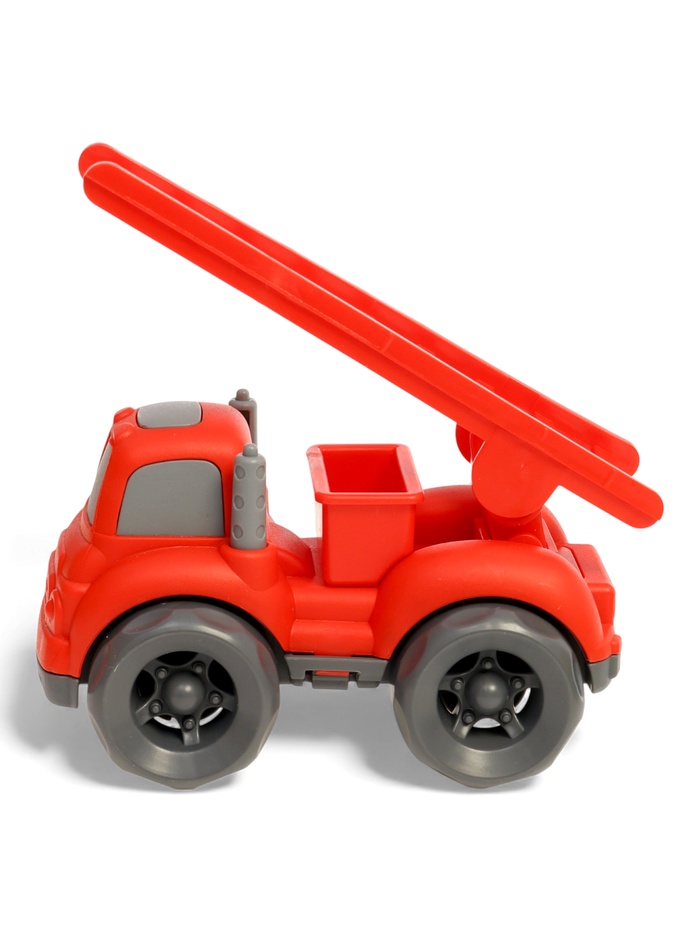 - Четыре транспортных средства в наборе: комплект включает автовоз-тягач с полуприцепом и три тематические машинки: пожарную, бетономешалку и легковую. Каждая модель имеет узнаваемые черты.