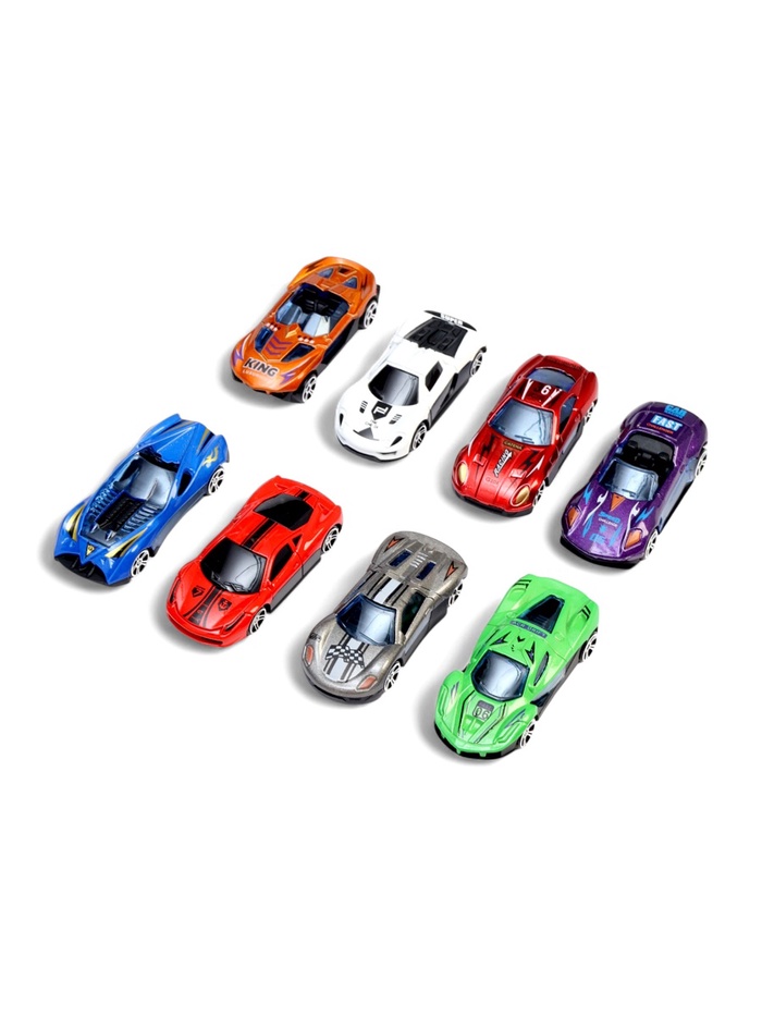 - 8 металлических машинок: в набор входят гоночные модели из прочного металла с детализированным дизайном. Машинки устойчивы к ударам, не теряют форму при активной игре.