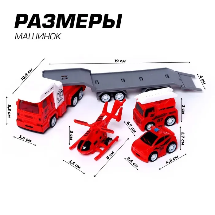 Грузовик инерционный «Автовоз. Пожарная служба», с 2 машинками и 1 вертолётом — Характеристики