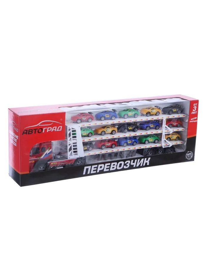 В комплекте инерционного грузовика «Автовоз» 15 машинок. Игрушка подойдёт ребёнку для увлекательного досуга и развития навыков езды. Малыш сможет устроить настоящие гоночные соревнования самостоятельно или с друзьями.