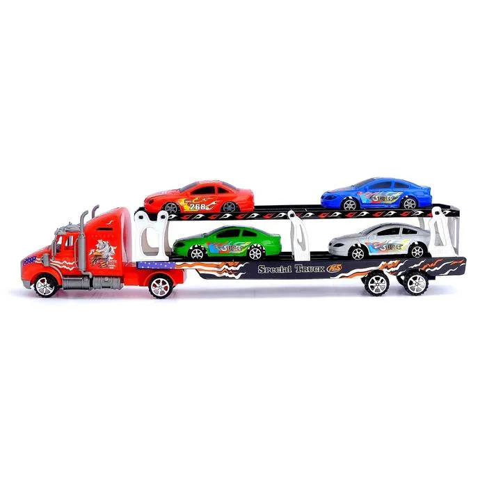 Перевози машины с легкостью! Инерционный автовоз «Автовоз» – это яркая и функциональная игрушка, которая подарит вашему ребёнку часы увлекательных игр. Этот грузовик создан для перевозки машинок и станет настоящим помощником в разыгрывании захватывающих историй. Представьте, как ваш маленький водитель запускает автовоз вперёд, чтобы доставить машинки точно в срок на воображаемую стоянку или гоночную трассу.