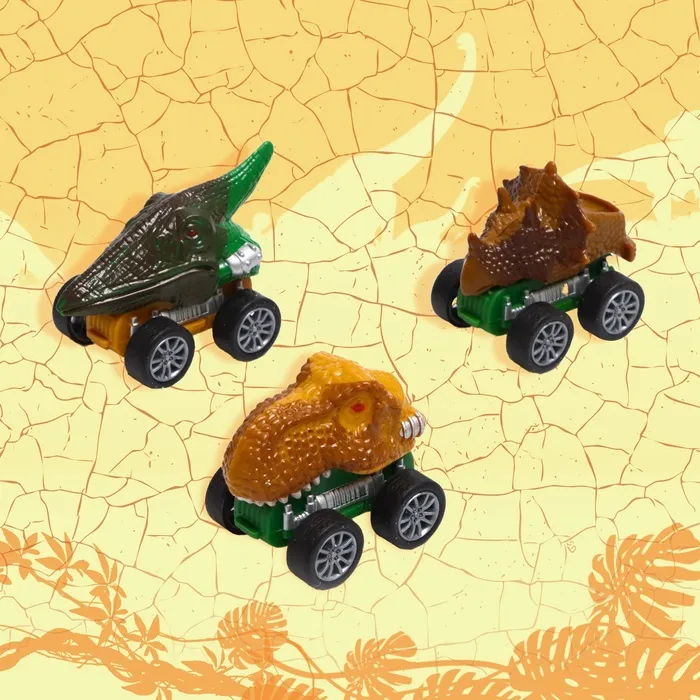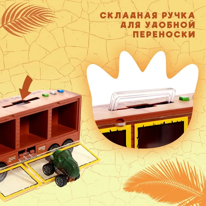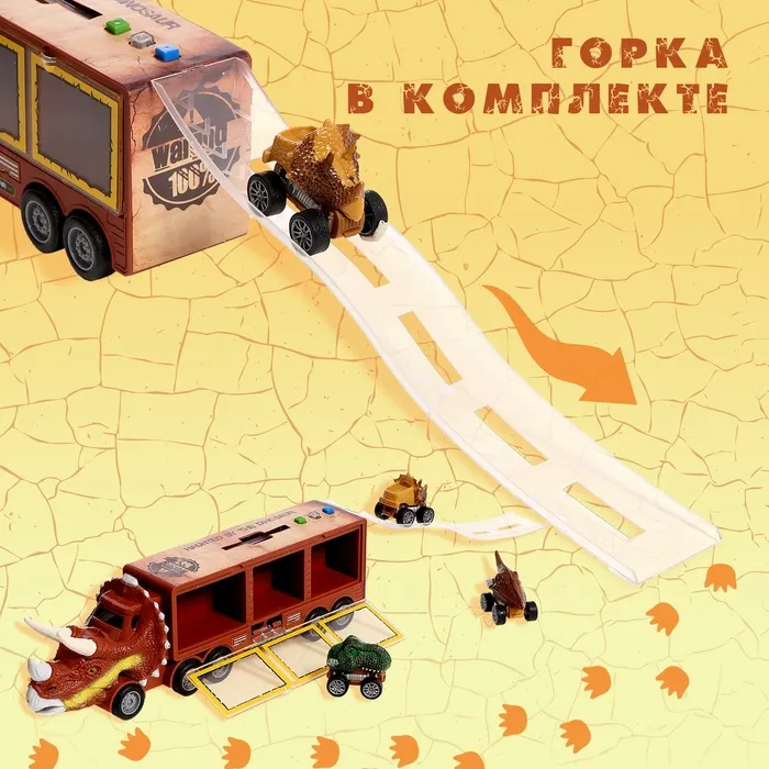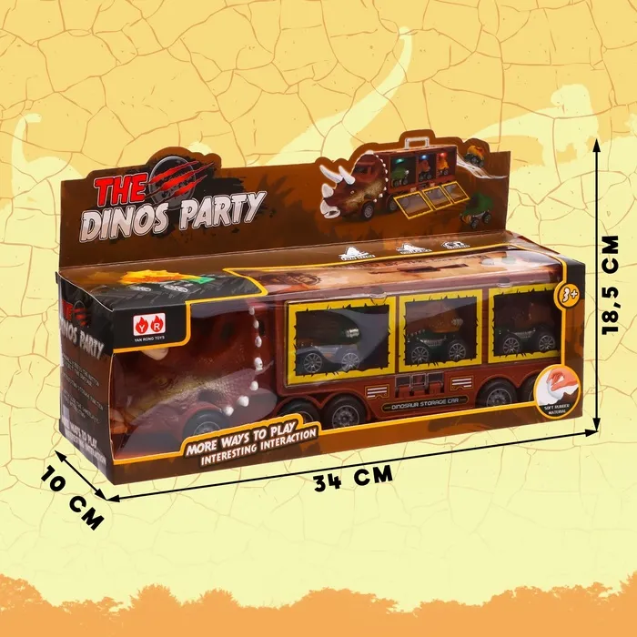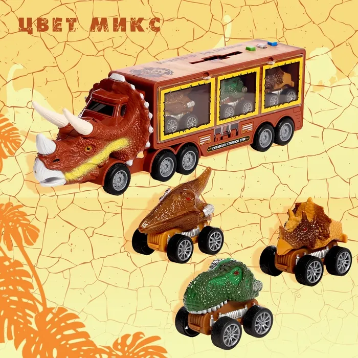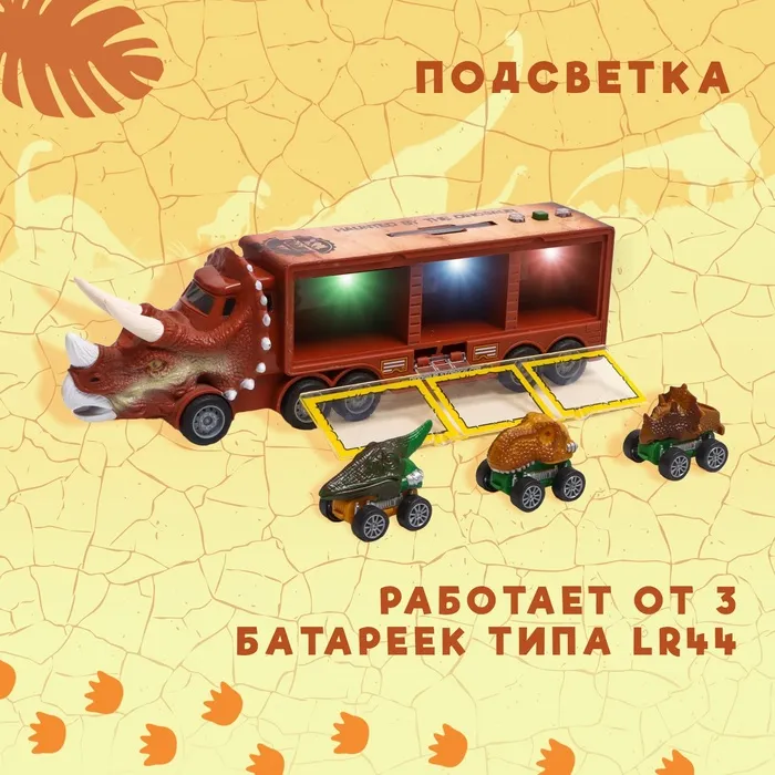 Грузовик инерционный «Динозавр», с 3 машинами, световые и звуковые эффекты — Характеристики
